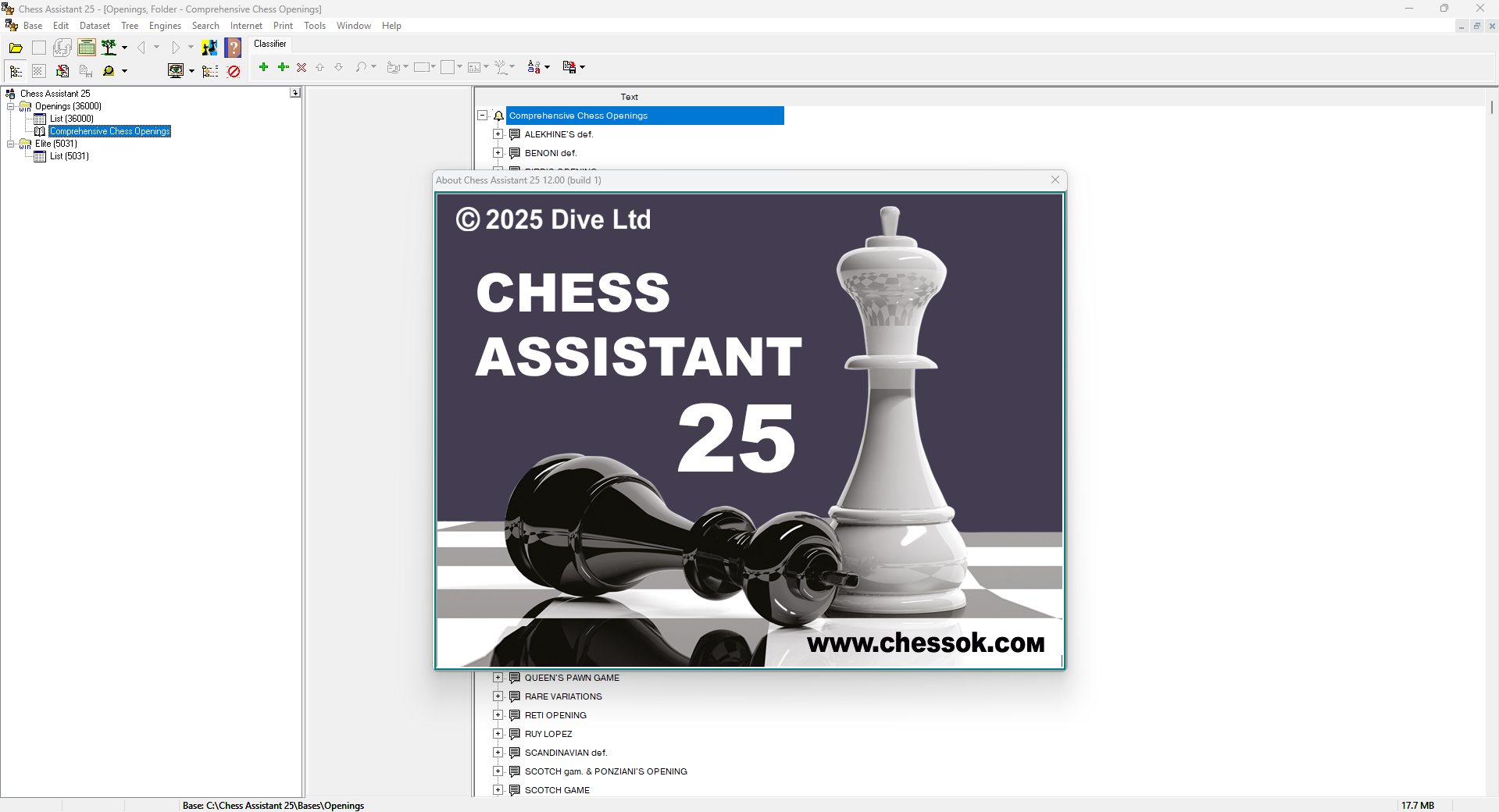 Chess Assistant Pro to unikalne narzędzie do zarządzania grą i bazą danych, szachami, grą przez Internet, analizą partii lub grą z komputerem. Chess Assistant zawiera program, tryb walki, tryb flag, encyklopedię debiutów, rozbudowany system wyszukiwania oraz unikalną bazę danych zawierającą łącznie około 7 077 000 partii. Funkcje Chess Assistant Pro: - Automatyczne wyszukiwanie adnotacji, otwieranie nowych, więcej adnotacji ekspertów z encyklopedii, otwieranie CAP, wstawianie odnośników do partii. - Wyszukiwanie błędów w celu sprawdzenia błędnych ruchów. - Analiza partii w wielu turach to zaawansowana metoda analizy, która pozwala na udoskonalenie wyszukiwania krok po kroku. Możesz nawet wybrać różne narzędzia dla każdego etapu gry. - Analiza znaczników pozwala oznaczyć wybraną lokalizację do automatycznej analizy. - Analiza interakcji pozwala sterować silnikiem w analizie i wybierać linie, zapamiętywać wyniki. - Encyklopedia debiutów szachowych zawiera obszerny materiał teoretyczny dotyczący wszystkich otwartych czasów, ponad 8000 adnotacji GM Kalinina i 40 milionów recenzji w najważniejszych lokalizacjach silnika. Możliwość personalizacji systemu blokowania. - Podczas wyszukiwania nie znajdziesz bardziej zaawansowanego systemu. ------------ [ENG] Chess Assistant Pro is a unique tool to manage the game and database, chess, playing chess through the Internet, analyzing games or playing chess against the computer. Chess Assistant includes the program, the martial play, the flag mode, the opening Encyclopedia, a system powerful search mode, Tree unique database of about 7.077.000 games in total. Features of Chess Assistant Pro: - Automatic search annotations open for new, more annotations of experts from the Encyclopedia open, rate CAP, insert game reference. - Search mistake for see bad moves. - Analysis game many turns is a method of advanced analysis to refine step by step search. You can even select different tools for each stage of the game. - Marker analysis lets you mark the location selected for automatic analysis after that. - Interaction analysis allows you to guide the engine in analysis and select the line, remember results. - Encyclopedia chess openings includes theoretical material abundant on all the open times, more than 8000 annotations by GM Kalinin and 40 million reviews by the most important locations of the engine. Lock system customization. - When searching, you will not find a more powerful systems. ------------ strona producenta: https://chesskingtraining.com strona programu: https://chesskingtraining.com/chess-assistant/ system operacyjny: Windows 8/ 8.1/ 10/ 11 (32bit-64bit) ------------ Do wypakowania torrenta użyj najnowszej wersji programu WinRAR. ------------ - jako administrator, uruchom plik "Enable button.exe" (pojawi się małe okienko "Enable button" pozostaw je otwarte, nie zamykaj go na czas instalacji) - uruchom plik "setup_Chess Assistant 25.exe" - w początkowej fazie instalacji, w oknie "User information" kliknij na "Next" - WAŻNE: w kolejnym oknie, w górnej domyślnej ścieżce instalacji programu, jeśli jest inna, to zmień ją na C Przykład: będzie D:Chess Assistant 25 zmień na C:Chess Assistant 25 (Jest, to potrzebne ponieważ domyślna ścieżka instalacji Update Patch to: C:Chess Assistant 25) - następnie kliknij na "Next" - dokończ instalację (po zakończeniu instalacji gry kliknij na "Finish") - wyłącz okienko "Enable button" (kliknij na "Close") - zainstaluj Update Patch.exe (instalator aktualizacji zawiera "poprawiony" plik wykonywalny, więc nie będzie potrzebny żaden inny gest do aktywacji) - po zakończeniu instalacji, kliknij na "Zakończ", uruchom grę - oprócz okna powitalnego programu pojawi się małe okienko profilowe, kliknij na "OK" - po uruchomieniu się gry, pojawi się okienko aktualizacyjne, kliknij na "Yes" - poczekaj do pojawienia się kolejnego okienka, kliknij na "OK" - w oknie powitalnym programu, w lewym dolnym rogu opcjonalnie zaznacz kwadracik "Do not show this screen next time" - następnie kliknij na "Start" ------------ Po zainstalowaniu programu Chess Assistant 25 możesz również dodać bazy danych zawierające łącznie 9,38 miliona partii oraz dodatkowe komponenty: - Huge Base: baza danych zawierająca 8,4 miliona partii (aktualizacja 1 grudnia 2024 r.) - Correspondence Database: baza danych zawierająca ponad 596 000 najlepszych partii w szachach korespondencyjnych - Direct Tree: drzewo debiutów (1 grudnia 2024 r.) - CAP Evaluations: drzewo analiz zawierające ponad 65 000 000 ocen - Guru Base: baza danych najlepiej ocenianych szachistów ze zdjęciami Upewnij się, że program Chess Assistant 25 jest wyłączony. - otwórz folder "Databases and additional components" - Wypakuj pliki z "cap.zip" do: C:Chess Assistant 25 - Wypakuj pliki z "d2m.zip" do: C:Chess Assistant 25 - Wypakuj pliki z "hugebase.zip" do: C:Chess Assistant 25bases - Wypakuj pliki z "corr2012.zip" do: C:Chess Assistant 25bases - Wypakuj pliki z "guru.zip" do: C:Chess Assistant 25Bases ------------ Win 11 25H2 - screen po instalacji: https://i.ibb.co/s9c9kyFj/1.png https://i.ibb.co/yF0Z8Lt2/2.png