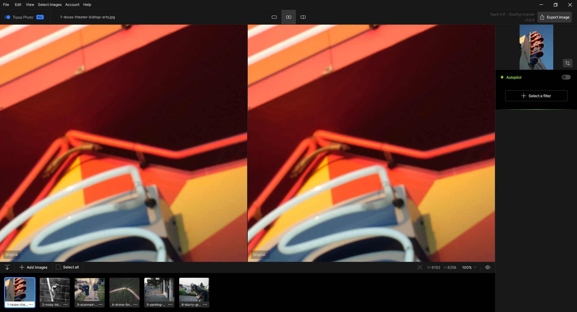 Topaz Photo to inteligentne oprogramowanie do ulepszania zdjęć, które pozwala wyostrzyć detale, przywrócić ostrość i dostosować poziomy na każdym zdjęciu. Wybierz jedno z 12 narzędzi opartych na sztucznej inteligencji, aby udoskonalić swoje zdjęcia, lub skorzystaj z autopilota.